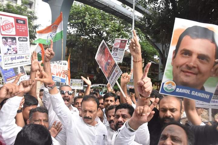 कांग्रेस नेताओं और कार्यकर्ताओं ने मुंबई में ज़ी समाचार कार्यालय के बाहर श्री राहुल गांधी के बारे में फर्जी खबरों के खिलाफ विरोध प्रदर्शन किया।