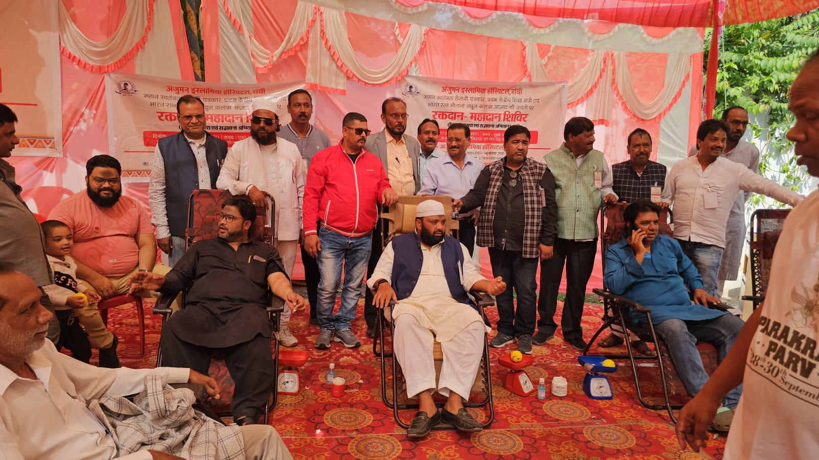 भारत रतन मौलाना अबुल कलाम आजाद की जयंती पर अंजुमन इस्लामिया हॉस्पिटल द्वारा आज रक्तदान शिविर का आयोजन हॉस्पिटल कैंपस में आयोजित हुआ,जिसका उद्घाटन मुख्य अतिथि रांची नगर आयुक्त, आईएएस अमीत कुमार ने किया,विशिष्ट अतिथि रांची सिविल सर्जन डॉ प्रभात कुमार एवं झारखंड चैम्बर ऑफ़ कमर्स के अध्यक्ष किशोर मंत्री,रिम्स डायरेक्टर के ओएसडी हैदर अली,अंजुमन इस्लामिया हॉस्पिटल के सचिव अनवर आलम व एमडी डॉ सयैद इक़बाल हुसैन,मौलाना डॉ ओबैदुल्लाह क़ासमी,अंजुमन इस्लामिया हॉस्पिटल के अधीक्षक मोकिम आलम ने किया.