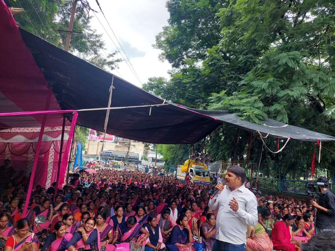आज दिनाँक 04/10/2023 को झारखण्ड राज्य अनुबंन्ध कर्मचारी महासंघ झारखण्ड के अनुसंघी संगठन झारखण्ड राज्य आंगनबाड़ी सेविका सहायिका संघ झारखण्ड प्रदेश का पूर्व निर्धारित कार्यक्रम के अनुसार अपनी मांगों के समर्थन में शांति पूर्ण मुख्यमंत्री आवास का घेराव कार्यक्रम का आयोजन किया गया ।कार्यक्रम की शुरुआत मोरहाबादी मैदान से शुरू हुई और राजभवन के सामने धरना प्रदर्शन में तब्दील हो गया ।धरनार्थियों ने अपने हाथों में मांगों की तख्ती ले रखा था ।आंगनबाड़ी कार्यकत्रियों को महिला पर्यवेक्षिका की बहाली में आरक्षण ,उम्र सीमा में छूट ,विषय और शैक्षणिक योग्यता की अनिवार्यता को शिथिल करने ,केन्द्रांश मानदेय मद की राशि मे वृद्धि 5वी तारीख तक मानदेय भुकतान सुनिश्चित करने आदि घेराव का मुख्य मुद्दा था ।