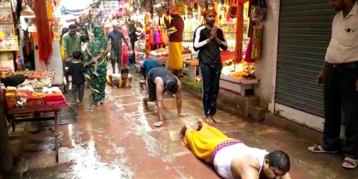 देवघर में लखराज जमीन का हस्तांतरण व निबंधन का मामला तूल पकड़ चुका है. इसे लेकर पंडा धर्मरक्षिणी सभा के महामंत्री कार्तिक नाथ ठाकुर विगत सात दिनों से कुंवर सिंह चौक पर आमरण अनशन पर हैं. सभा लखराज जमीन का हस्तांतरण व निबंधन की मांग कर रहा है. महामंत्री का कहना है कि प्रशासनिक अधिकारी जमीन हस्तांतरण व निबंधन मामले में लापरवाही बरत रहे हैं. अनशन के सातवें दिन शिवगंगा घाट से बाबा मंदिर तक प्रशासनिक अधिकारियों को सद्बुद्धि के लिए पंडा समाज ने दंडवत दिया. दंडवरत में अनशनकारी शामिल नहीं होकर सिर्फ पंडा समाज शामिल हुए. बाबा मंदिर के आसपास का क्षेत्र लखराज प्रकृति की जमीन पर बसा है. राजा-महाराजा से प्राप्त जिस जमीन का लगान माफ है उसे लखराज प्रकृति की जमीन कहा गया है