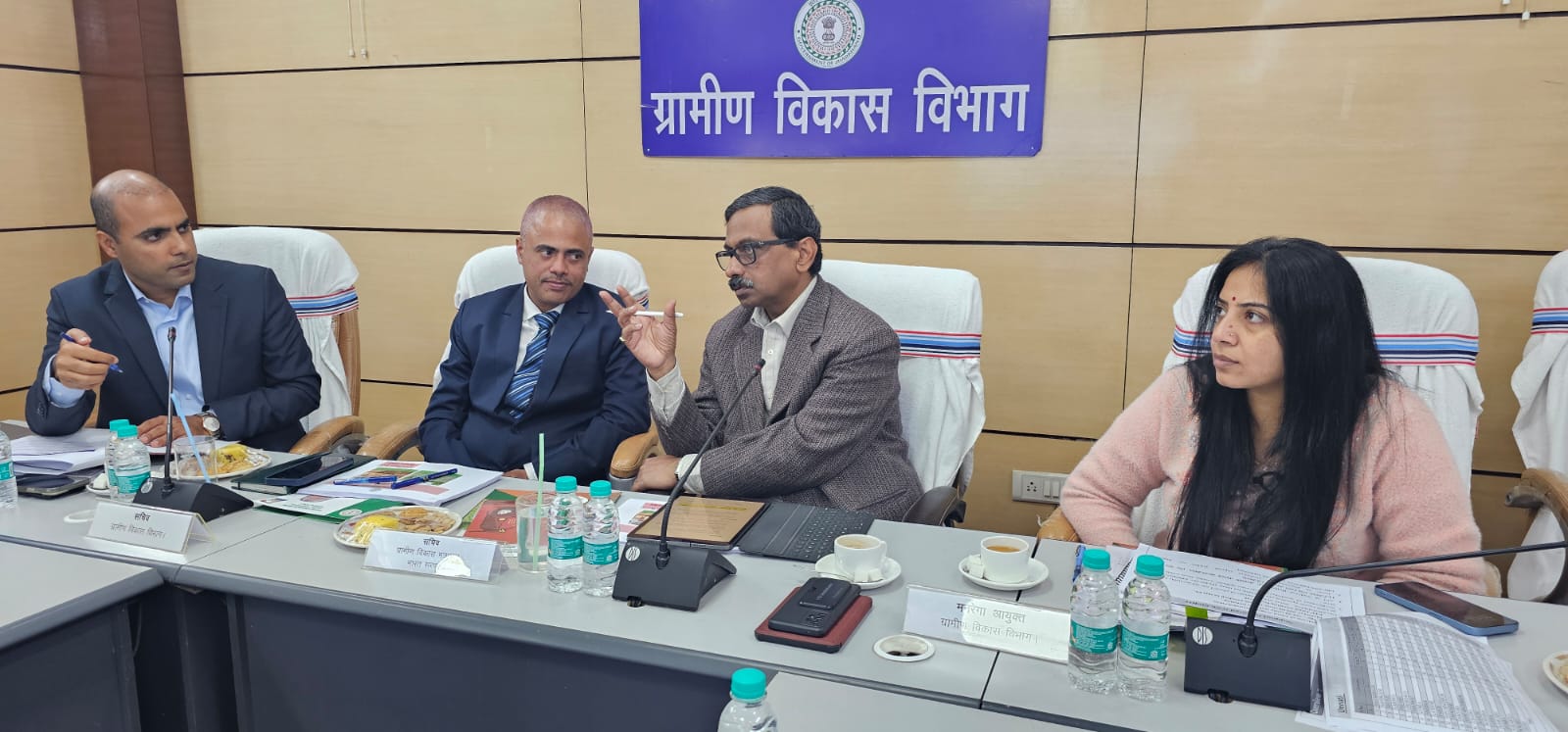 बैठक में सीईओ जेएसएलपीएस श्री संदीप सिंह समेत ग्रामीण विकास विभाग के अधिकारीगण उपस्थित थे।