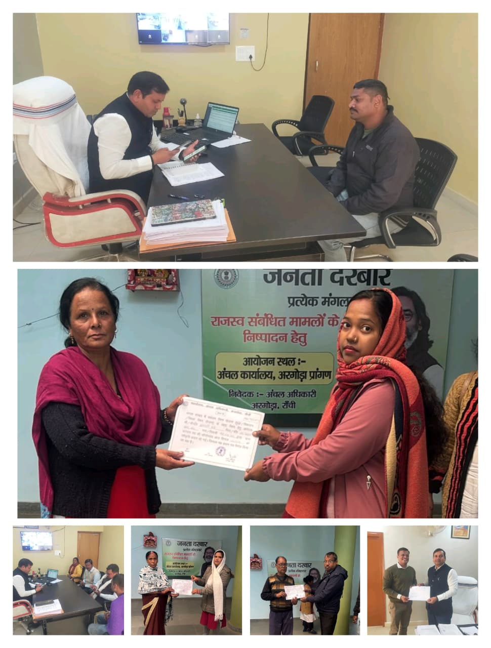 उपायुक्त-सह-जिला दंडाधिकारी, रांची श्री मंजूनाथ भजन्त्री के निदेशानुसार प्रत्येक मंगलवार को रांची जिला के सभी अंचलों में नियमित रूप से जनता दरबार का आयोजन किया जा रहा है। जनता दरबार का उद्देश्य आमजनों की समस्याओं का त्वरित, पारदर्शी एवं प्रभावी समाधान सुनिश्चित करना है। इसी क्रम में आज आयोजित जनता दरबार में राजस्व, सामाजिक सुरक्षा एवं प्रमाण-पत्र से संबंधित विभिन्न मामलों का ऑन द स्पॉट निष्पादन किया गया।