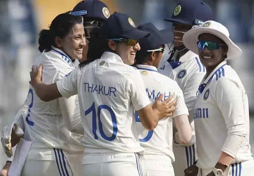 भारतीय महिला क्रिकेट टीम ने रविवार को इतिहास रच दिया. मेजबान टीम ने रविवार को यहां एकमात्र टेस्ट में आठ विकेट की जीत के साथ ऑस्ट्रेलिया की महिला टीम को पहली बार टेस्ट मैच में शिकस्त दी. मैच के अंतिम दिन भारत ने बल्ले और गेंद दोनों से शानदार प्रदर्शन किया. भारतीय गेंदबाजों ने सुबह 28 रन देकर ऑस्ट्रेलिया के पांच विकेट चटकाए. जिससे मेहमान टीम दूसरी पारी में 261 रन पर सिमट गई. भारत को 75 रन का लक्ष्य मिला, जो उसने 19वें ओवर में दो विकेट पर 75 रन बनाकर हासिल कर लिया. सलामी बल्लेबाज स्मृति मंधाना 38 रन बनाकर नाबाद रहीं. जेमिमा रोड्रिग्स भी 12 रन बनाकर नाबाद रहीं. भारतीय महिला टीम 1995 के बाद पहली बार किसी सत्र में घरेलू सरजमीं पर एक से अधिक टेस्ट खेल रही थी और ऑस्ट्रेलिया के खिलाफ पूरे मैच के दौरान टीम दबदबा बनाने में सफल रही. भारत ने इससे पहले डीवाई पाटिल स्टेडियम में इंग्लैंड की महिला टीम को भी एकमात्र टेस्ट में 347 रन के बड़े अंतर से हराया था. यह टेस्ट क्रिकेट में रनों के लिहाज से इंग्लैंड के खिलाफ किसी भी टीम की सबसे बड़ी जीत थी. ऑस्ट्रेलिया के खिलाफ 11 टेस्ट में यह भारत की पहली जीत है. भारतीय महिला टीम ने अब तक 40 टेस्ट में सात जीत दर्ज की है, जबकि छह मैच गंवाए है. टीम के 27 मैच ड्रॉ रहे हैं. पिछले हफ्ते इंग्लैंड के खिलाफ जीत के दौरान जहां जेमिमा, शुभा सतीश और रेणुका सिंह ठाकुर जैसे नए टेस्ट सितारे उभरे तो ऑस्ट्रेलिया के खिलाफ 20 साल की रिचा घोष ने पदार्पण करते हुए 52 रन की पारी खेली. चौथे दिन की सुबह भारतीय स्पिनरों का दबदबा रहा. स्नेह राणा (63 रन पर चार विकेट) और राजेश्वरी गायकवाड़ (42 रन पर दो विकेट) ने ऑस्ट्रेलिया की पारी को समेटने में अधिक समय नहीं लगाया. ऑस्ट्रेलिया की नजरें अपनी 46 रन की बढ़त को मजबूत करने पर टिकी थी लेकिन पहले सत्र में 45 मिनट के भीतर ही उसने अपने बाकी बचे पांच विकेट गंवा दिए. पूजा वस्त्राकर (40 रन पर एक विकेट) ने ऐशलेग गार्डनर (07) को पगबाधा करके भारत को दिन की पहली सफलता दिलाई. स्नेह ने इसके बाद अनाबेल सदरलैंड (27) और एलेना किंग (00) को पवेलियन भेजा. राजेश्वरी ने किम गार्थ (04) को आउट करके पारी की पहली सफलता हासिल की और फिर जेस योनासेन (09) को बोल्ड करके ऑस्ट्रेलिया की दूसरी पारी का अंत किया. पहली पारी में 219 रन बनाने वाले ऑस्ट्रेलिया ऩे दूसरी पारी में 261 रन बनाए. पहली पारी में 406 रन बनाने वाले भारत को 75 रन का लक्ष्य मिला. शेफाली वर्मा (04) ने पारी की पहली गेंद पर चौका मारा लेकिन गार्थ के इसी ओवर में विकेटकीपर एलिसा हीली को कैच दे बैठीं. बेन मूनी ने गार्डनर की गेंद पर रिचा घोष (13) का आसान कैच टपकाया जबकि उन्होंने खाता भी नहीं खोला था. स्मृति और रिचा ने दूसरे विकेट के लिए 51 रन जोड़कर भारत की राह आसान की. रिचा के आउट होने के बाद स्मृति 