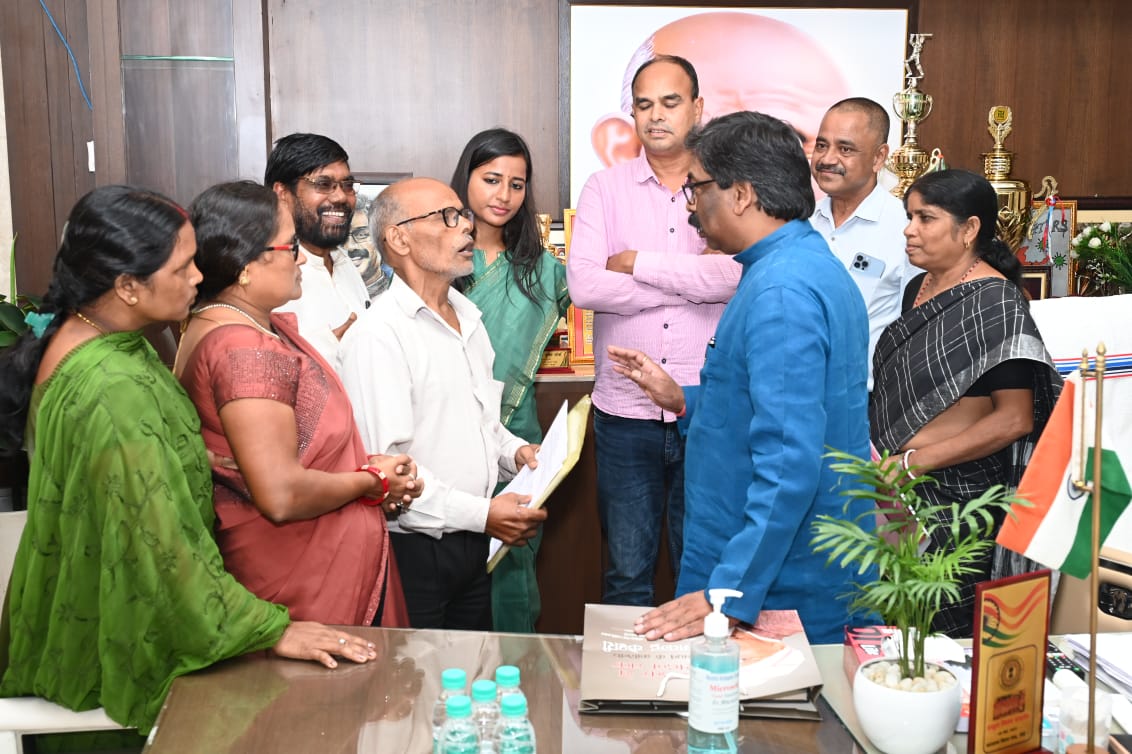 संयोजिका अध्यक्ष संघ के एक प्रतिनिधिमंडल ने मुलाकात कर विभिन्न मांगों से संबंधित एक ज्ञापन मुख्यमंत्री को सौंपा। प्रतिनिधिमंडल ने मुख्यमंत्री के समक्ष कहा कि राज्य सरकार झारखंड प्रदेश विद्यालय रसोईया/संयोजिकाओं को पारा शिक्षक की तर्ज पर स्थायी सेवा शर्त नियम बना कर स्थायी करे, आँगनबाड़ी सेविका/सहायिका के तर्ज पर मानदेय, 5 लाख का निःशुल्क बीमा, साल में 2 साड़ी दिया जाना, सेवानिवृत्ति के बाद पेंशन लागू किए जाने सहित अन्य मांगों पर विचार करे। मुख्यमंत्री ने प्रतिनिधिमंडल को आश्वस्त किया कि उनकी उचित मांगों पर राज्य सरकार यथोचित कार्यवाही करेगी। इस अवसर पर विधायक श्री विनोद सिंह, श्री सुदिव्य कुमार सोनू, सुश्री अम्बा प्रसाद, संघ के प्रदेश अध्यक्ष अजीत प्रजापति, कोषाध्यक्ष अनीता देवी, प्रदेश महासचिव प्रेमनाथ विश्वकर्मा सहित अन्य उपस्थित थे।