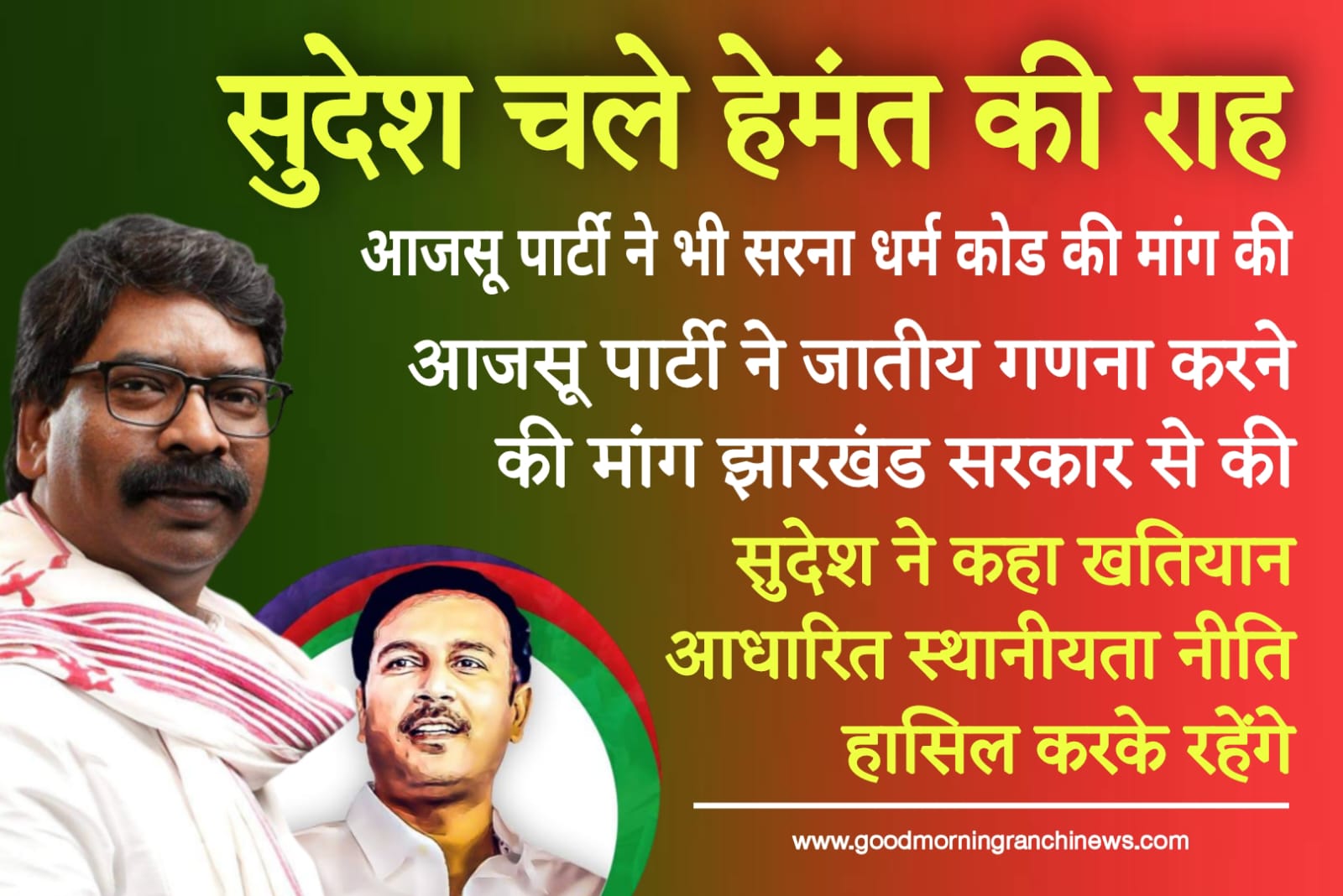 झारखंड में एक बार फिर से सरना धर्म कोड को लेकर सियासत तेज हो गई है. जानकारी हो कि इसकी शुरुआत मुख्यमंत्री हेमंत सोरेन ने प्रधानमंत्री को चिट्ठी लिखकर की है. मुख्यमंत्री के चिट्ठी लिखने के बाद अब कांग्रेस ने भी समर्थन किया है और आदिवासी समुदाय के लिए जनगणना में सरना धर्म के लिए अलग कोड की मुख्यमंत्री की मांग का समर्थन करते हुए भाजपा पर जमकर निशाना साधा है. लेकिन दूसरी ओर अलग सरना धर्म कोड को लेकर अभी भारतीय जनता पार्टी के नेता दुविधा में दिखते हैं. वही विगत दिनों आजसू पार्टी के महाधिवेशन के आखिरी दिन 24 सूत्री राजनीतिक प्रस्ताव पारित किया। इसमें सरना धर्मकोड लागू करने की मांग भी शामिल है। आजसू पार्टी सुप्रीमो सुदेश महतो भी हेमंत सोरेन की राह पर चल पड़े हैं और वह हेमंत सोरेन की सरना धर्म कोड लागू करने की मांग का एक तरह से समर्थन किया है।