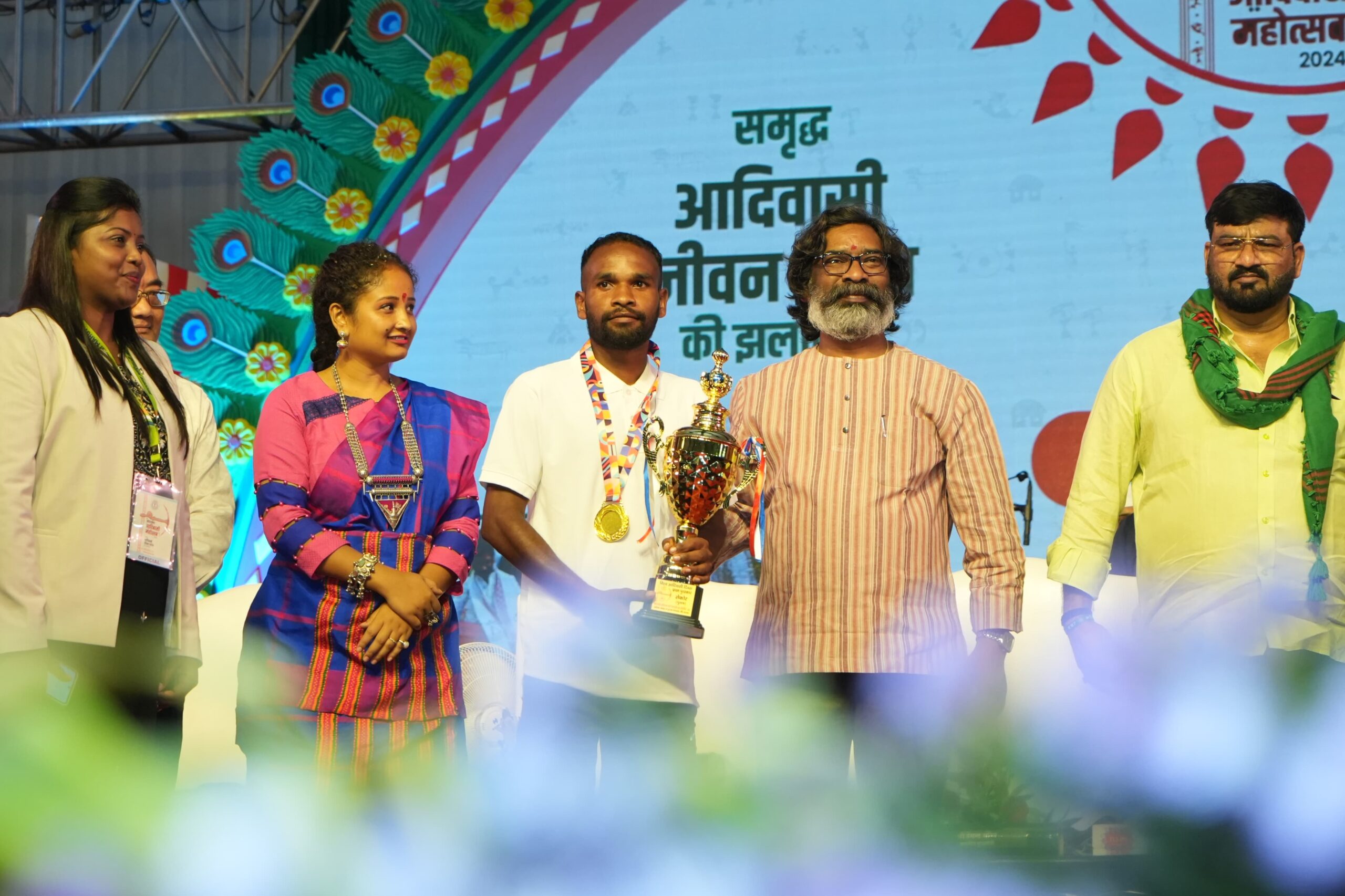 विश्व आदिवासी दिवस के अवसर पर आयोजित विभिन्न जनजातीय खेल प्रतियोगिताओं के विजेता खिलाड़ियों को मुख्यमंत्री श्री हेमंत सोरेन के द्वारा सम्मानित किया गया।