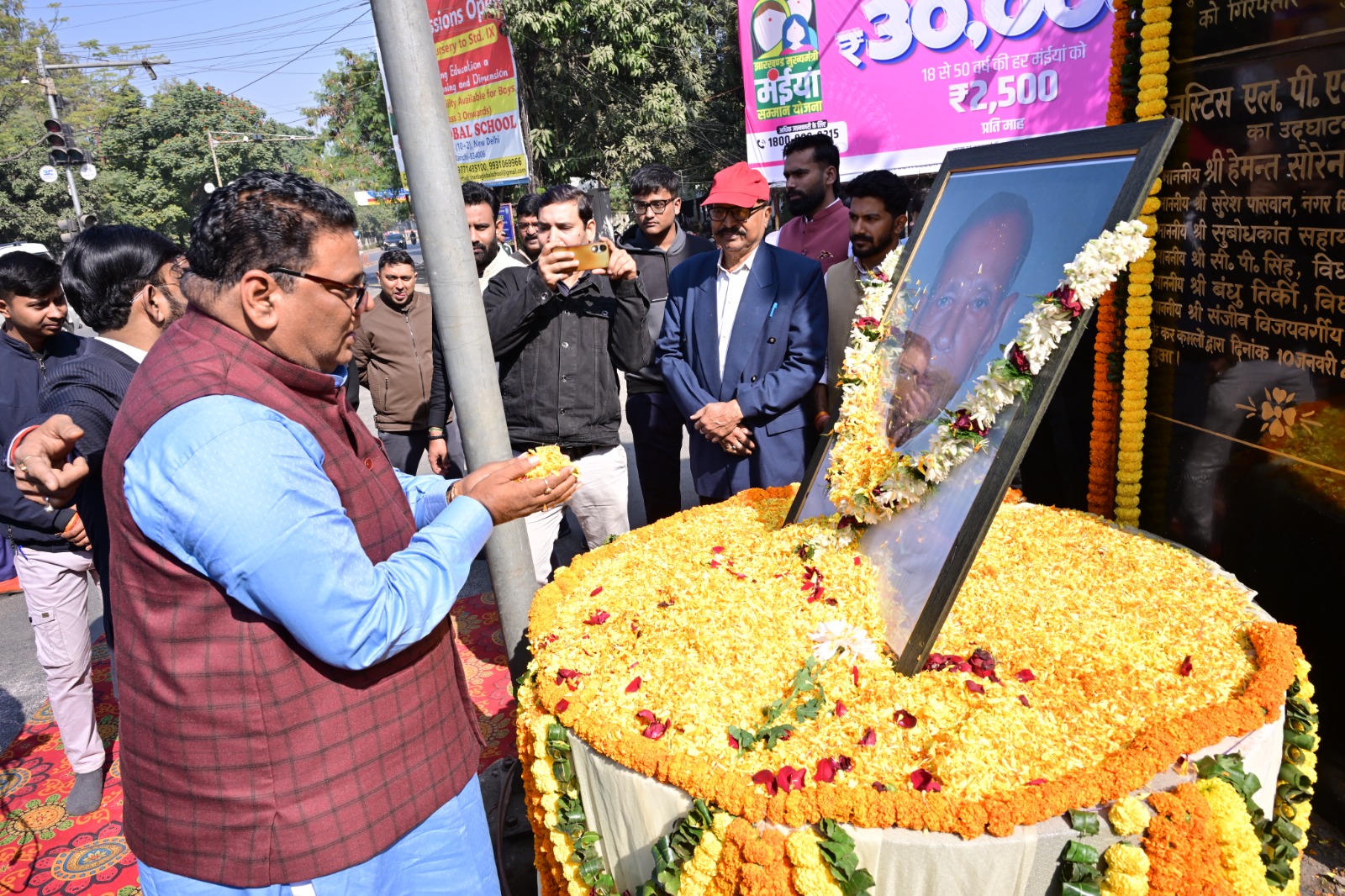 आज न्यायमूर्ति एलपीएन शाहदेव की पुण्यतिथि पर कांके रोड स्थित चौक पर श्रद्धा सुमन अर्पित